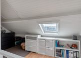 Op de tweede verdieping komt u binnen in de open zolderruimte met dakraam, bergruimte en toegang tot de slaapkamer achter.