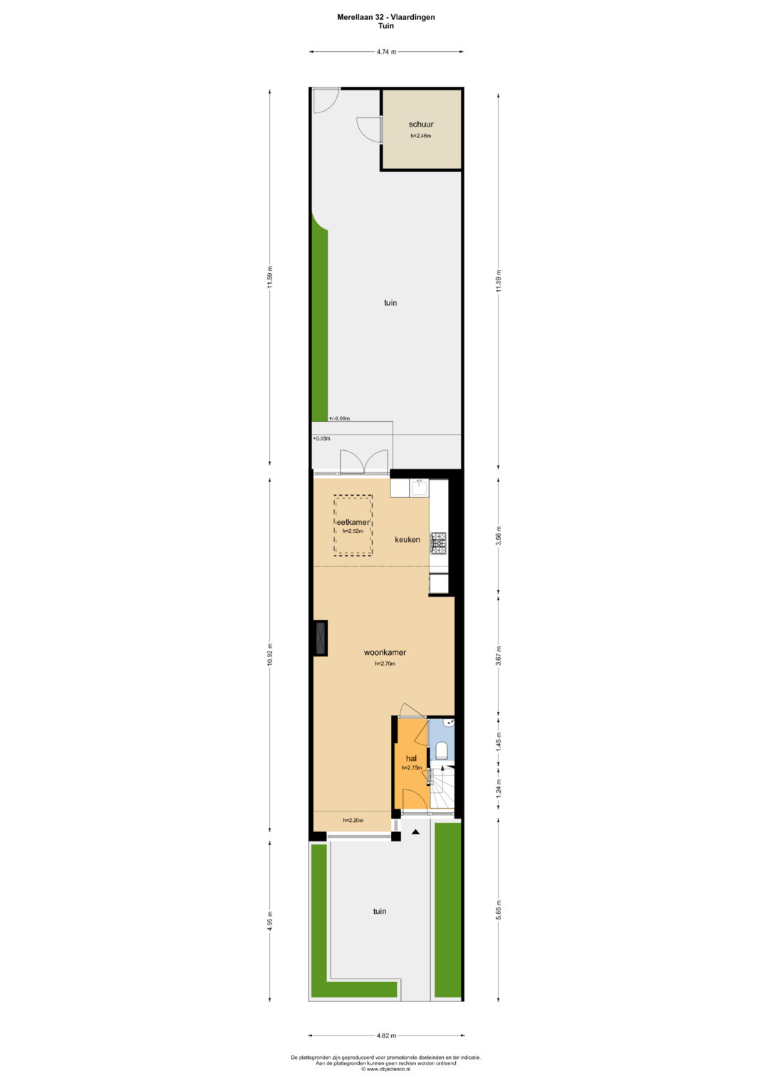 – Ruim 11 meter diepe achtertuin met ruime berging en achterom;