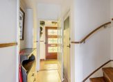 Entree woning, tocht hal voorzien van meterkast en garderoberuimte, gang met vaste kast en trap naar de eerste verdieping.