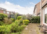 – Keurige achtertuin met groenperkje op het zonnige zuiden met aangebouwde stenen berging en vrijstaande houten berging;