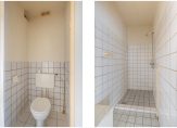 Separaat toilet, eveneens gedeeltelijk betegeld en voorzien van natuurlijke ventilatie.