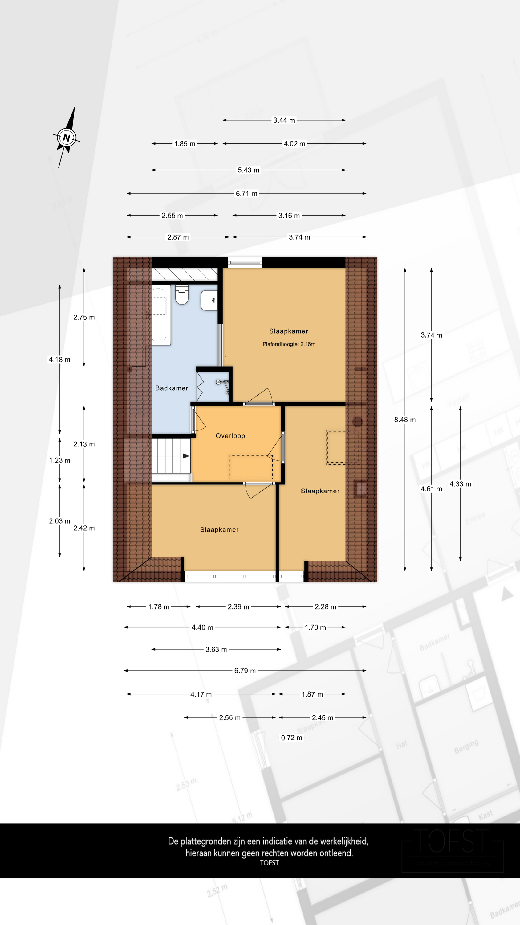 De derde slaapkamer is aan de achterzijde van de woning en gelegen en beschikt over een oppervlakte van bijna 14 m².