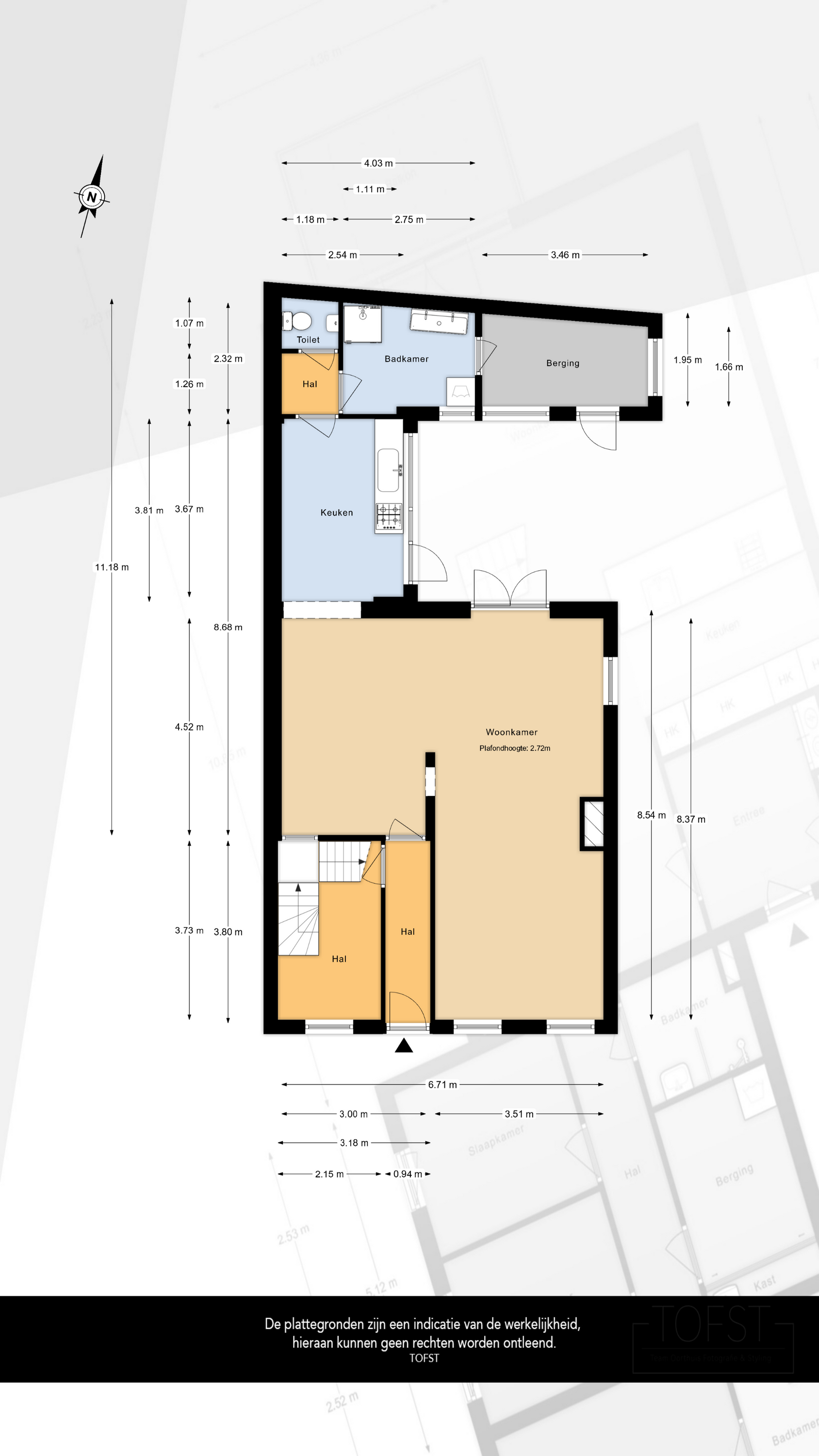Middels de karakteristieke voordeur komt u via de gang uit in de voorkamer voorzien van meterkast, garderoberuimte en de trap naar de verdieping.