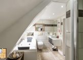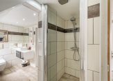Vanaf zowel de overloop of middels de hoofdslaapkamer aan de achterzijde is de tweede badkamer toegankelijk, welke is voorzien van zowel een ligbad als een losse inloopdouche, tweede toilet, wastafelmeubel, designradiator en raampje voor natuurlijke ventilatie.