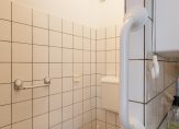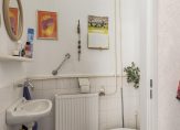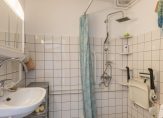 De driekwart betegelde badkamer is voorzien van een ruime douchehoek, staand toilet, wastafel en de aansluiting van de wasmachine is hier aanwezig.