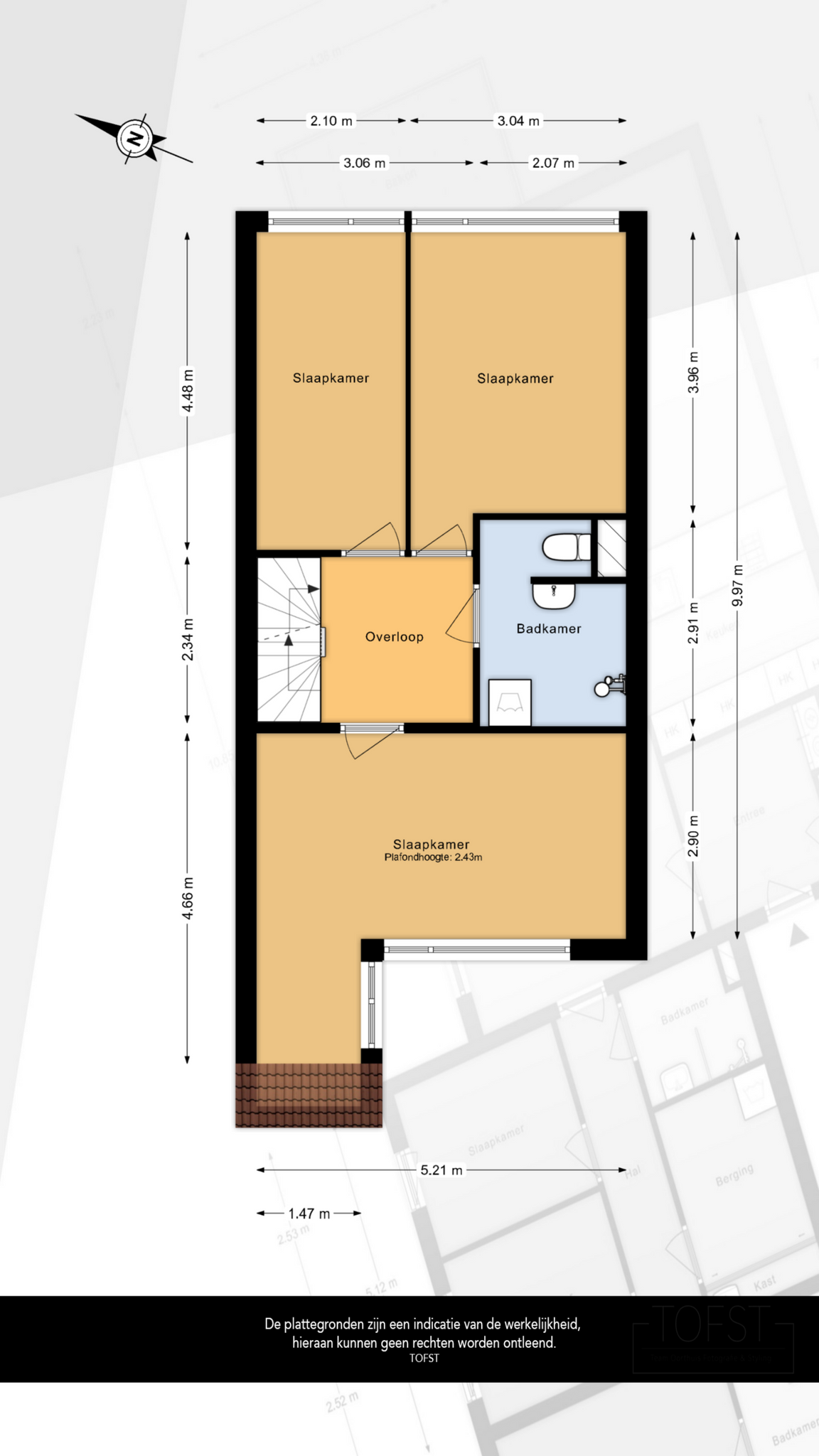 Slaapkamer 2 en slaapkamer 3 zijn aan de achterzijde van de woning gelegen en hebben een respectievelijke oppervlakte van bijna 9 m² en ruim 12 m² .