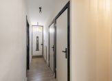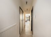 Entree woning, gang/hal voorzien van moderne houtlook laminaatvloer met hoge plinten, strakke afwerking, garderoberuimte, vaste kast met meterkast, wasmachine opstelplaats en toilet.