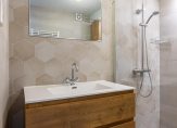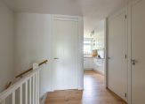 Tevens is op deze verdieping de moderne badkamer gelegen, welke is betegeld in de hedendaagse kleuren. Deze fijne ruimte beschikt over een inloopdouche, wastafelmeubel met spiegelkast, design radiator en afzuiging.