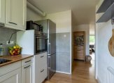 De keurige L-vormige keuken is aan de voorzijde van het complex gelegen en voorzien van een koel- vriescombinatie, 4-pits keramische kookplaat met afzuigschouw, vaatwasser, oven en veel kastruimte.