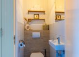 Tot slot bevindt zich op deze verdieping de deels betegelde toiletruimte met staand closet en fontein en een vaste kast voorzien van een elektrische boiler en de aansluitingen van zowel de wasmachine als droger.