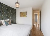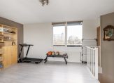 Op deze verdieping bevindt zich een royale slaapkamer van circa 19 m², eveneens voorzien van een moderne houtlook laminaatvloer. In de vaste kast zijn de cv-combiketel, de mechanische ventilatiebox en de aansluitingen voor de wasmachine en droger geplaatst.