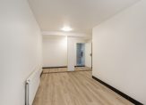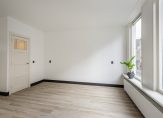 Deze gehele etage beschikt over een fraaie pvc vloer en strakke wandafwerking met hoge zwarte plinten.