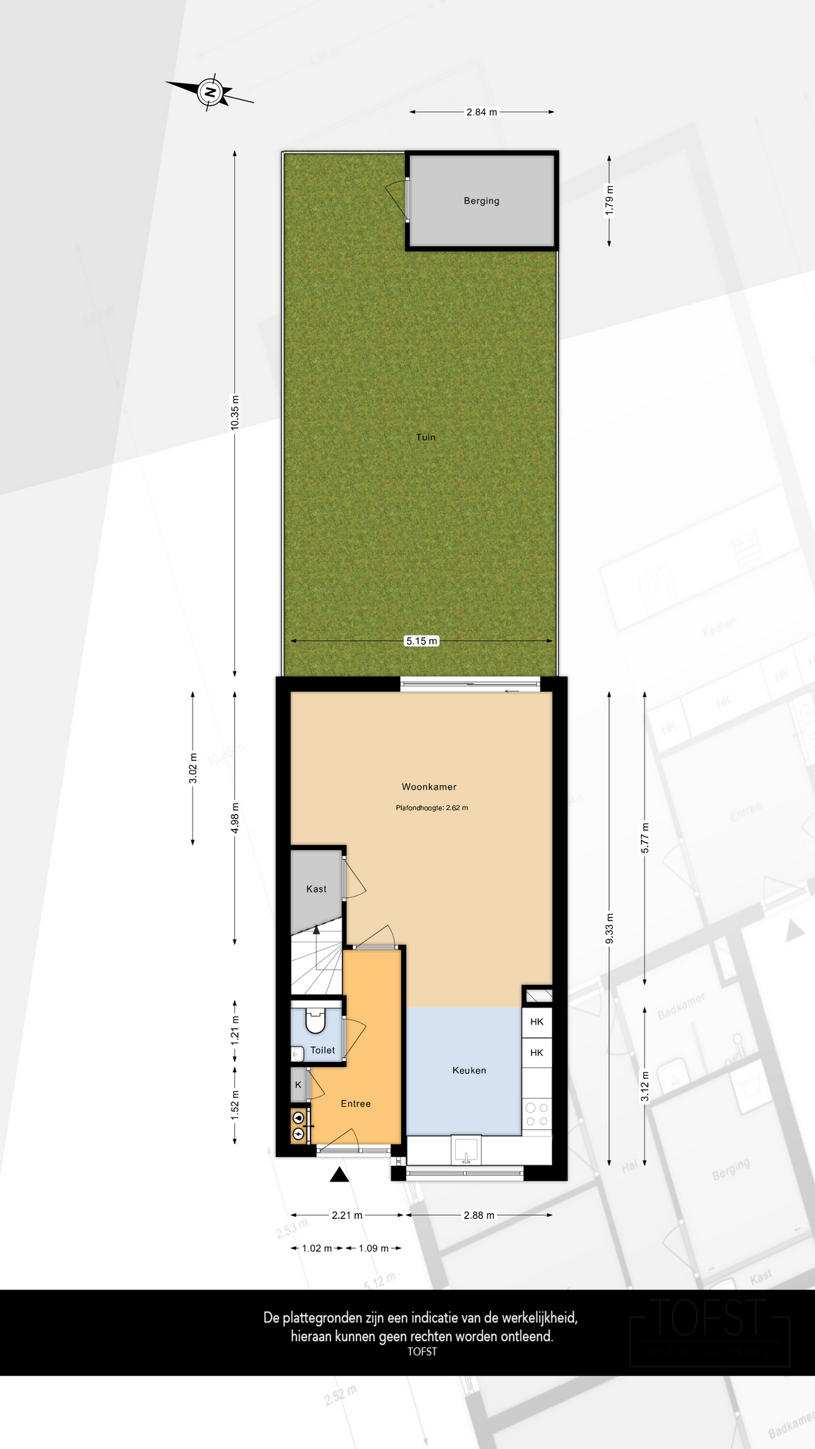 – Aantrekkelijke achtertuin van circa 55 m² met berging en achterom;