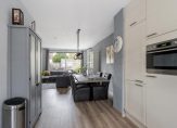 Daarna komt u uit in de ruime en lichte tuingerichte woonkamer van 28 m² met een moderne hout look laminaat vloer, airconditioning, trapkast en een schuifpui naar de achtertuin. De onderhoudsarme achtertuin van circa 55 m² is voorzien van terras, houten erfafscheidingen, berging en achterom. Aan de voorzijde vindt u de keurige keuken in lichte kleurstelling met alle hedendaagse inbouwapparatuur.
