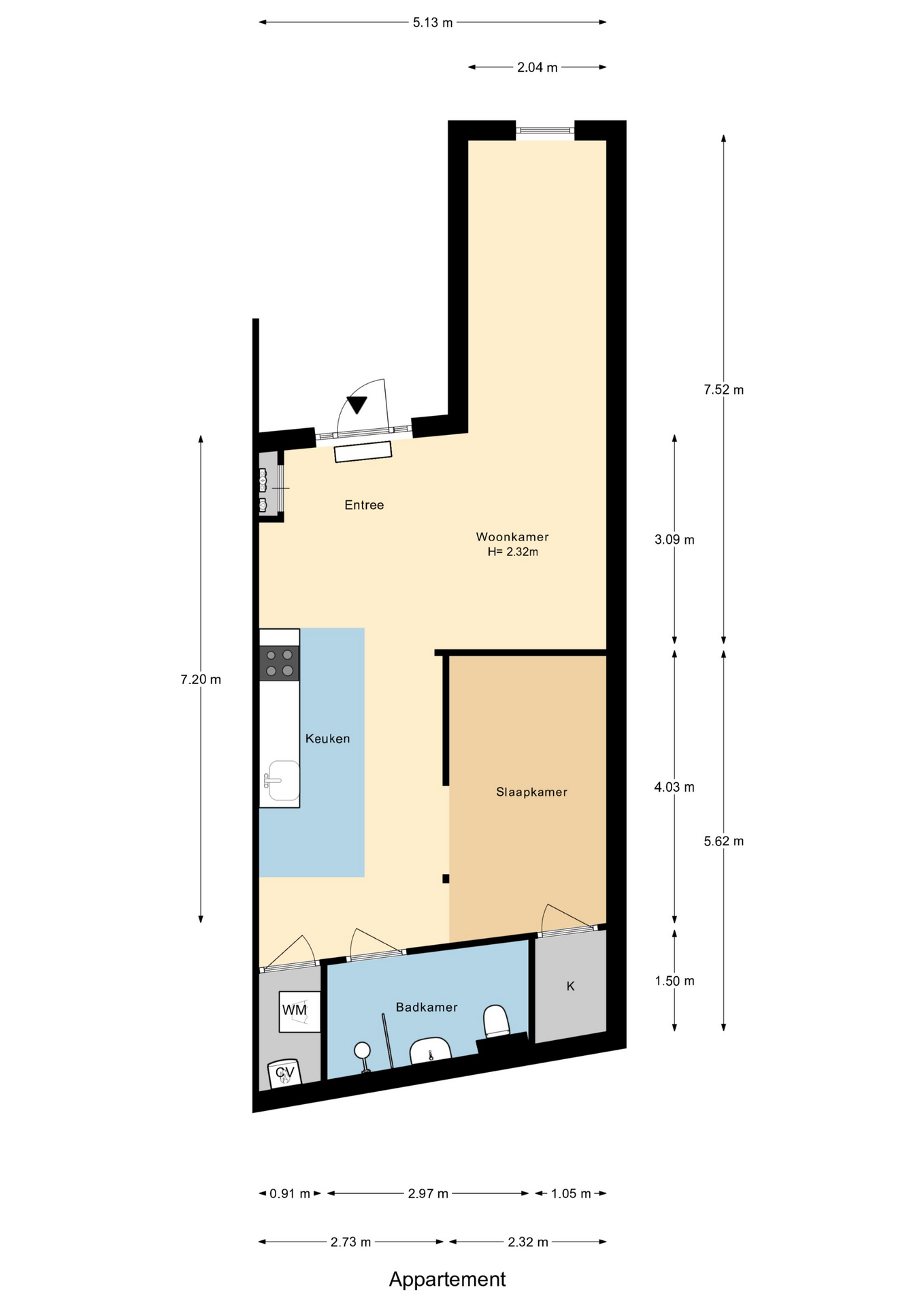 – Woonoppervlak 54 m² (gemeten conform de meetinstructie);