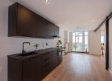 – Voorzien van fijne woonkamer met moderne open keukenopstelling, strak gestucte wanden, moderne laminaatvloer met hoge plintafwerking.