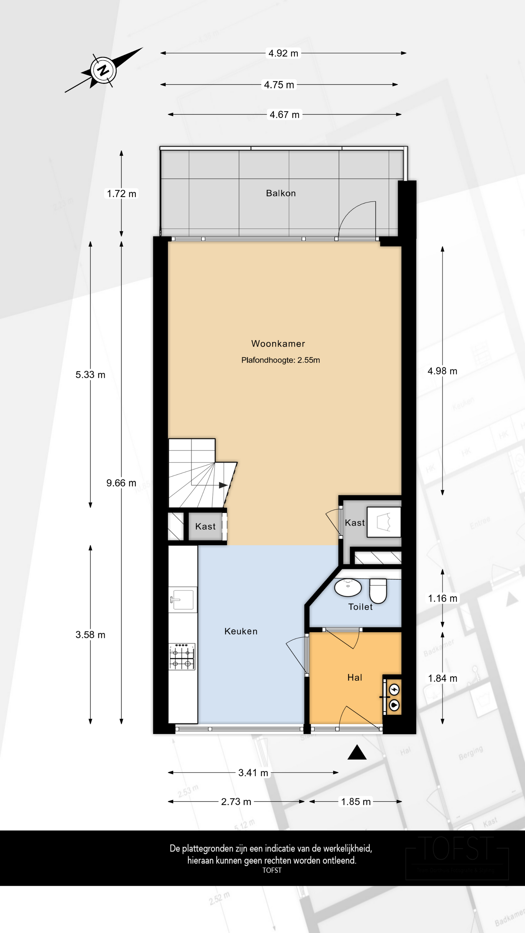 – Ruime woonkamer met open keuken totaal circa 35 m²;