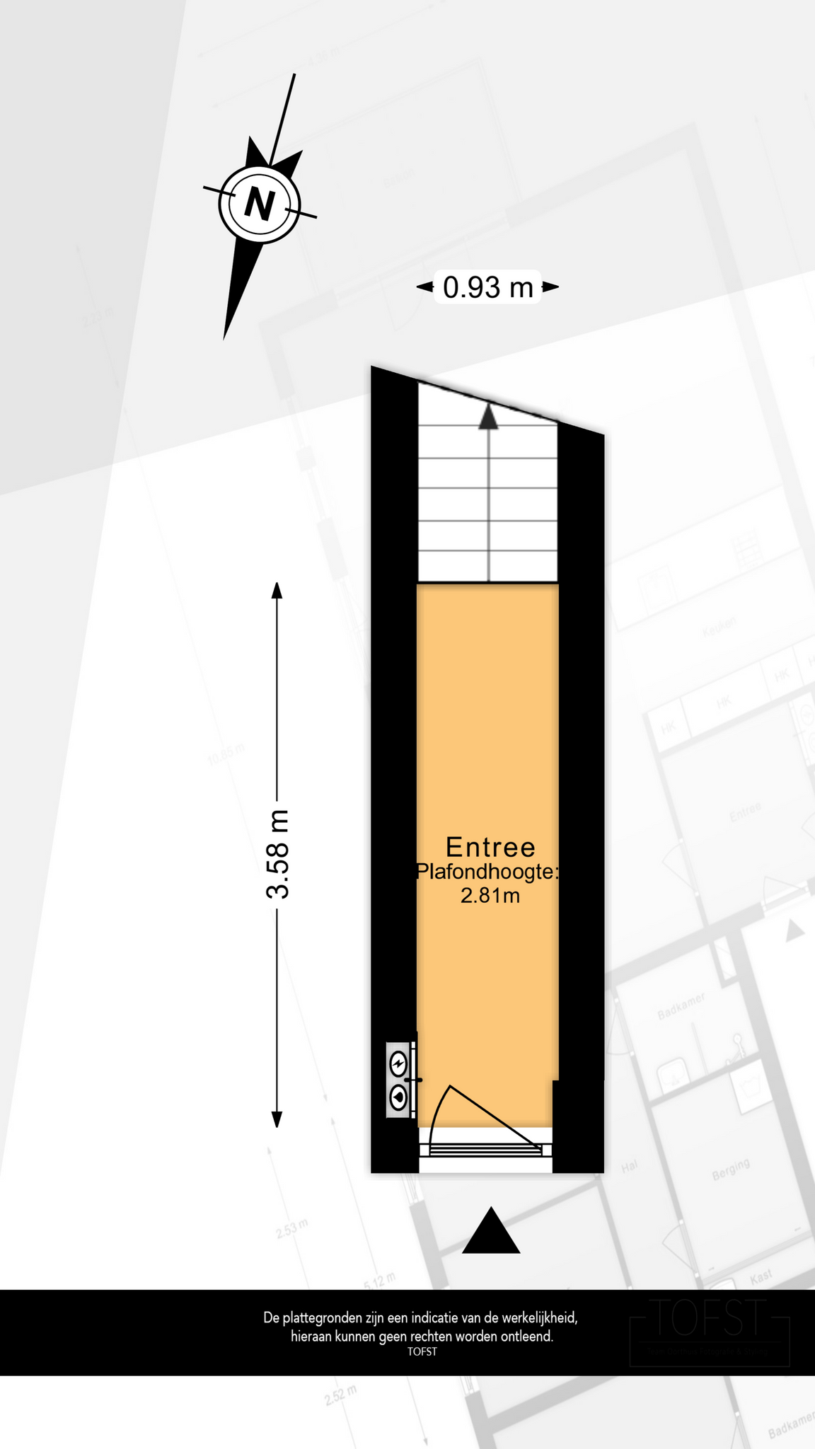 Entree woning, meterkast en trap naar eerste verdieping met overloop.