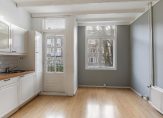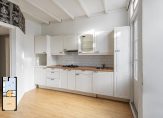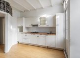 Woonkeuken aan de achterzijde circa 13 m² voorzien van 4 pits gas kookplaat met afzuigschouw, spoelbak, laminaatvloer en toegang tot het zonnige balkon.