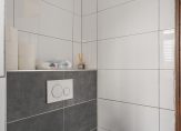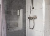 – Geheel betegelde badkamer uit 2023 voorzien van douchehoek, hangend closet en wastafelmeubel;