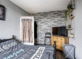 – Lichte woonkamer voorzien van een keurige wand- en vloerafwerking en sfeervolle open haard;