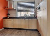 De entree van de woning is aan de zijkant gelegen en via de ruime oprit te bereiken. In de hal is een meterkast en keurige toiletruimte met wandcloset en fontein. Onder de trap naar de verdieping is provisieruimte aanwezig. Bij binnenkomst in het leefgedeelte valt gelijk de grote ruimte op. Woonkamer en keuken zijn één open ruimte van circa 55 m², waarbij de keuken aan de voorzijde van de woning is gelegen. De keuken heeft een L-inrichting, welke op maat is gemaakt en uitgerust met een inductie kookplaat, vaatwasser, koelkast en kokend water kraan. Aan de achterzijde is de woning uitgebouwd waardoor een zeer royale living is ontstaan. Er is een lichtstraat aanwezig in de aanbouw, er zijn tuindeuren geplaatst en in de woonkamer is een grote maatwerk kast gebouwd die ook achterblijft voor de kopers. Aansluitend bij de woonkamer is nog een grote veranda van 21 m² aangebouwd, welke tevens dient als verlengde van de leefruimte. Een heerlijke plek om te zitten met volledige privacy en zicht op vrij gelegen achtertuin.