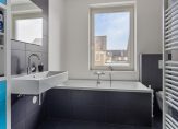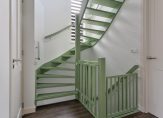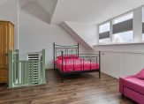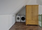 Op de 1e verdieping zijn 3 slaapkamers en een badkamer. Deze keurige badkamer is compleet uitgevoerd met ligbad, douche, wastafel en wandcloset. In de betegelde badkamer ligt eveneens vloerverwarming. De slaapkamers zijn bij wanden en plafond keurig afgewerkt met stucwerk, op de vloer ligt PVC en er zijn rolluiken aanwezig bij de raamkozijnen. De deurkozijnen en binnendeuren zijn allen uitgevoerd in hardhout. Met een vaste trap is toegang tot de 2e verdieping. Deze open zolderruimte heeft een brede dakkapel met weids uitzicht richting de parken die aan de achterzijde van de woning zijn gelegen en is ingericht als 4e slaapkamer. Op deze verdieping zijn ook de witgoedaansluitingen.