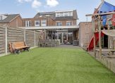 De tuin is gelegen op het zuidwesten en het betreft dus een heerlijk zonnige tuin. Daarbij ligt de tuin aan de achterzijde geheel vrij met uitzicht op prachtige eikenbomen en is de tuin circa 20 meter diep vanaf de tuindeuren! Er is een terras aan het huis met veranda/overkapping. De tuin is voorzien van kunstgras en nette schuttingen van hout en aansluitend een beukenhaag.