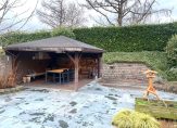 De tuin is onderhoudsvriendelijk aangelegd met verschillende terrassen en perken. Aan de achterzijde is de tuin vrij gelegen tegen een geluidswal. In de tuin is een mooie veranda/overkapping gebouwd met piramidedak en kachelaansluiting. Een heerlijk plekje om te verblijven.