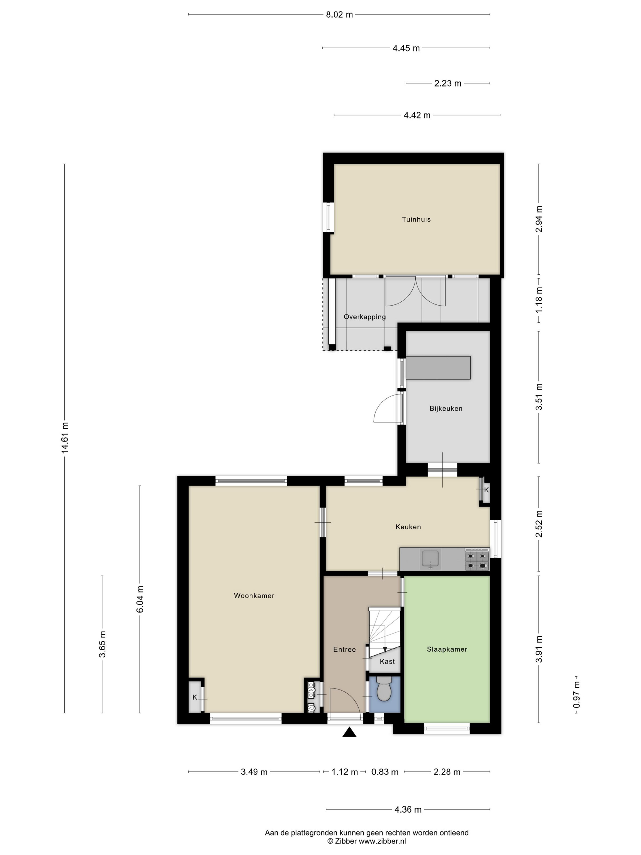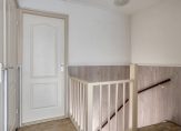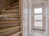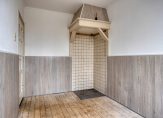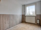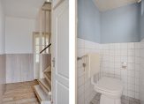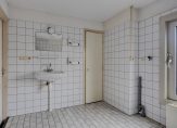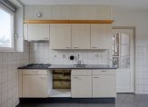 Hal met vernieuwde meterkast, toiletruimte, kelderkast, trapopgang naar de verdieping en toegang tot de keuken en speel-/werk-/slaapkamer. De dichte keuken voorzien van eenvoudig keukenblok en geeft toegang tot de bijkeuken.
