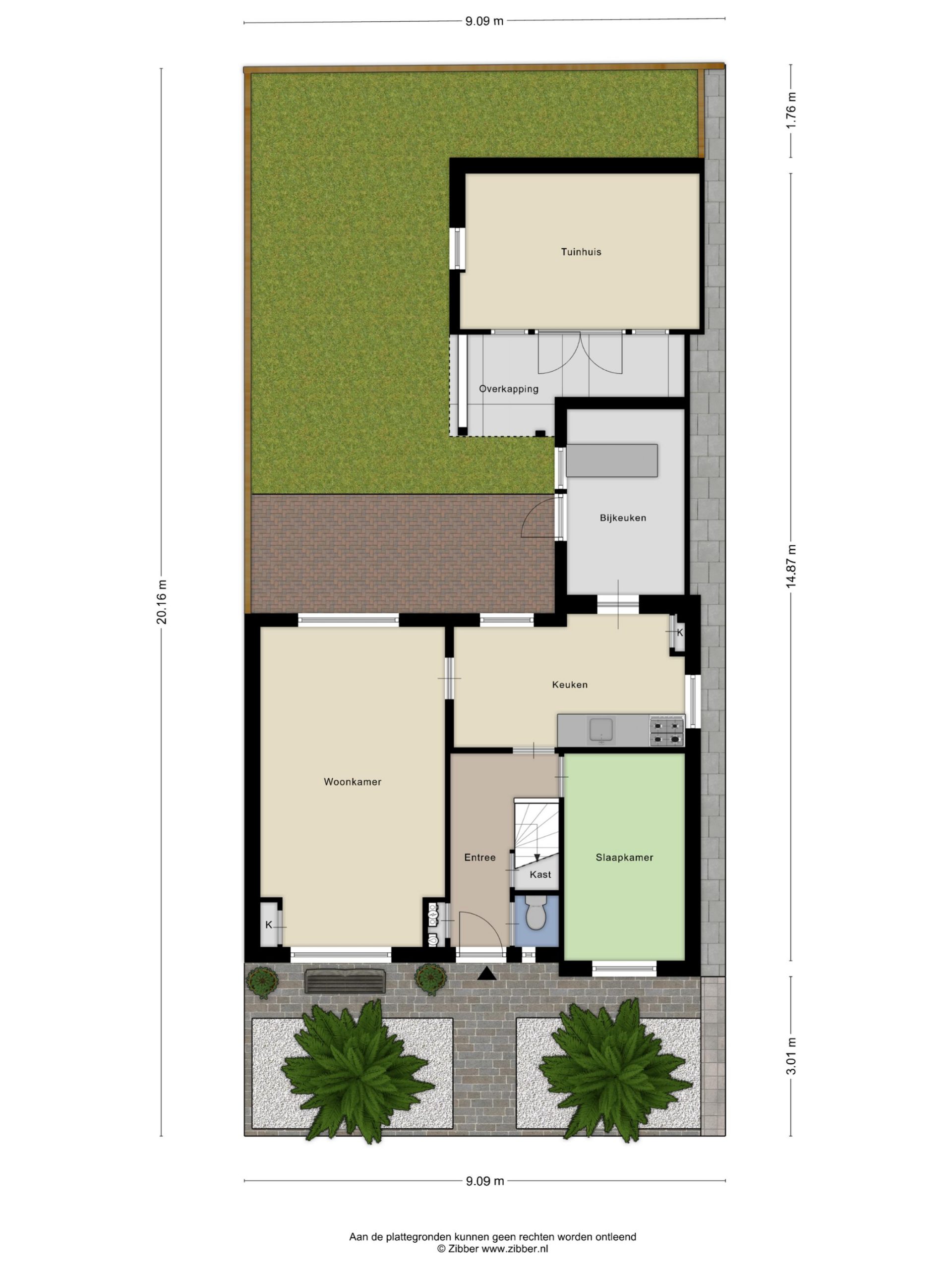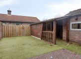 De tuin is gelegen op het noordoosten en is voorzien van terras, kunstgras en achter in de tuin staat een houten tuinhuis.