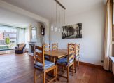 Royale hal met trapopgang, meterkast, garderobe en toiletruimte. Vanuit de hal is er toegang tot de inpandige garage, de keuken en de woonkamer. De woonkamer is totaal 49 m² groot en is netjes afgewerkt met eiken houten vloerdelen en een sfeervolle gashaard. De woonkeuken is naast de eetkamer aan de tuinzijde gesitueerd en is voorzien van een nette hoekinrichting met 5-pits-gaskookplaat, afzuigkap, vaatwasser, koelkast en combimagnetron. Vanuit de eetkamer is er rechtstreeks toegang tot de tuin. Achter de keuken treft u een bijkeuken met witgoedaansluitingen en een berging, beiden met toegang tot de tuin. De inpandige garage is voorzien van elektrische garagedeur en verwarming.