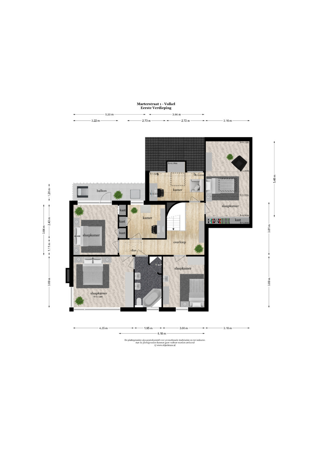 Via de royale overloop is er toegang tot maar liefst 6 slaapkamers en een grote badkamer. De slaapkamers zijn respectievelijk ca. 11, 16, 12, 7, 8 en 11 m² groot. Diverse kamers zijn voorzien van vaste kastruimte en de slaapkamer aan de tuinzijde heeft de beschikking over een balkon aan de tuinzijde.