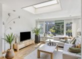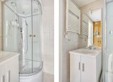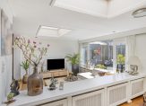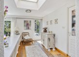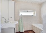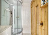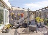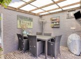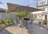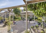 Vanuit de leefruimte is direct toegang tot de tuin, maar ook tot de berging/bijkeuken. Deze ruimte is multifunctioneel en hier is de woning ook ‘achterom’ toegankelijk. In deze bijkeuken/berging hangt de cv.-ketel, zijn de witgoedaansluitingen, is verwarming, water en elektra aanwezig en verder veel praktische kastruimte. Aan de achterzijde is een relaxruimte ingericht met een sauna, douchecabine en wastafel.