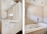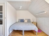 Op de 1e verdieping is een overloop met toegang tot badkamer en 3 slaapkamers. De slaapkamers zijn respectievelijk circa 9, 12.5 en 13 m² groot, heerlijk licht, hebben laminaatvloeren en zijn voorzien van rolluiken. Op één slaapkamer is een wastafel aanwezig en een andere kamer beschikt over een grote schuifkast. Bij de grootste slaapkamer hangt een airco. De badkamer beschikt over een whirlpool ligbad, wandcloset en wastafel met meubel. Met een vaste trap is toegang tot de 2e verdieping. Hier is een kleine overloop met bergruimte en verder een hele grote 4e slaapkamer met dakkapel aan de achterzijde. Op het gedeelte van de overloop is nog een vliering voor extra bergruimte.
