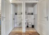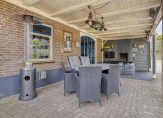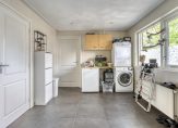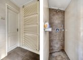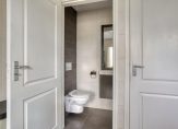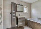 In de achterbouw van de woning is een grote bijkeuken met witgoedaansluitingen en een buitendeur. Vanuit deze bijkeuken is ook de toiletruimte, badkamer en slaapkamer op de begane grond toegankelijk. Deze slaapkamer op de begane grond is ruim 14 m² groot en heeft openslaande deuren naar de tuin en naar de overkapping aan de zijkant. Naast slaapkamer kan deze kamer ook prima dienst doen als kantoor/praktijkruimte aan huis dan wel een tuin-/speel- of werkkamer. De keurige badkamer is voorzien van een ligbad, inloopdouche en wastafel met meubel.
