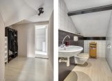 Op de 1e verdieping is een royale overloop met toegang tot 2 slaapkamers aan weerzijde van de woning en nog 1 grote slaapkamer boven de achterbouw. Tussenin zit een doorloop met bergruimte en een toiletruimte met wastafel. Op de slaapkamers is airco aanwezig. Een luik geeft toegang tot een vliering voor extra bergruimte.