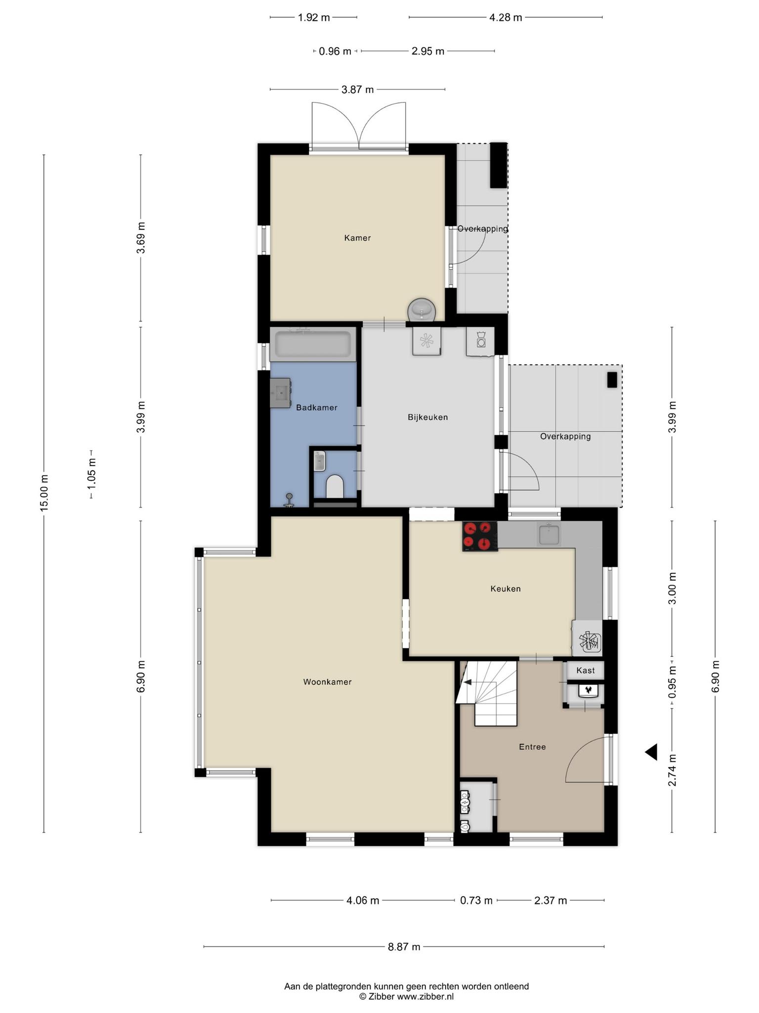 De woning staat op een perceel van 1.071 m² en achter het huis staat een groot bijgebouw van maar liefst circa 125 m² met daarachter nog een overkapping/carport van nog eens 60 m². Naast wonen is het voeren van een bedrijf mogelijk op deze locatie, waarbij bedrijven met milieucategorie 1 en 2 zijn toegestaan. Hiervoor is het bijgebouw geschikt, maar ook als hobby- of ontspanningsruimte. Dit bijgebouw is dan ook multifunctioneel in te zetten.