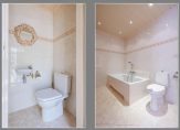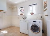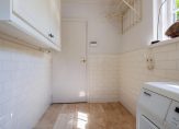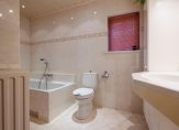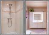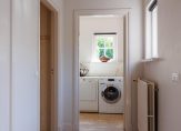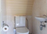 Vanuit het leefgedeelte is de achterbouw te bereiken. Hier is een gang met buitendeur naar de tuin, nette toiletruimte en een complete badkamer voorzien van ligbad, douche, wastafel met meubel en toilet. Tot slot is er nog een bijkeuken met aansluitingen voor het witgoed en een cv.-ruimte met de Intergas HR cv.-ketel (gehuurd, kosten € 38,- per maand).