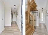 Op de eerste verdieping bevinden zich meerdere ruime slaapkamers, allemaal comfortabel en praktisch ingedeeld met mooie PVC vloeren. De badkamer is modern en compleet ingericht met een inloopdouche, ligbad, wandcloset en wastafelmeubel, al met al een perfecte combinatie van stijl en functionaliteit. Er is een vaste trap die toegang geeft tot de 2e verdieping. Hier is een overloop met toegang tot een royale vierde slaapkamer met PVC vloer en een technische ruimte met de opstelling van de warmtepomp, warm water boiler en afzuigsysteem.