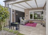 De ruime tuinkamer is aan de achterzijde van de woning gebouwd. Deze ruimte is circa 36 m² groot en voorzien van tegelvloer met vloerverwarming, keukenblok en een schuifpui naar de tuin. Er is ook een groot zonnescherm aanwezig. Deze tuinkamer is een heerlijke tweede leefruimte op de begane grond. Ideaal voor grote gezinnen dan wel als hobbyruimte of ontspanningsruimte.