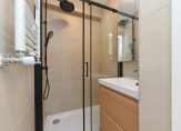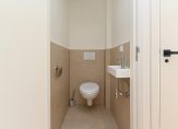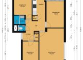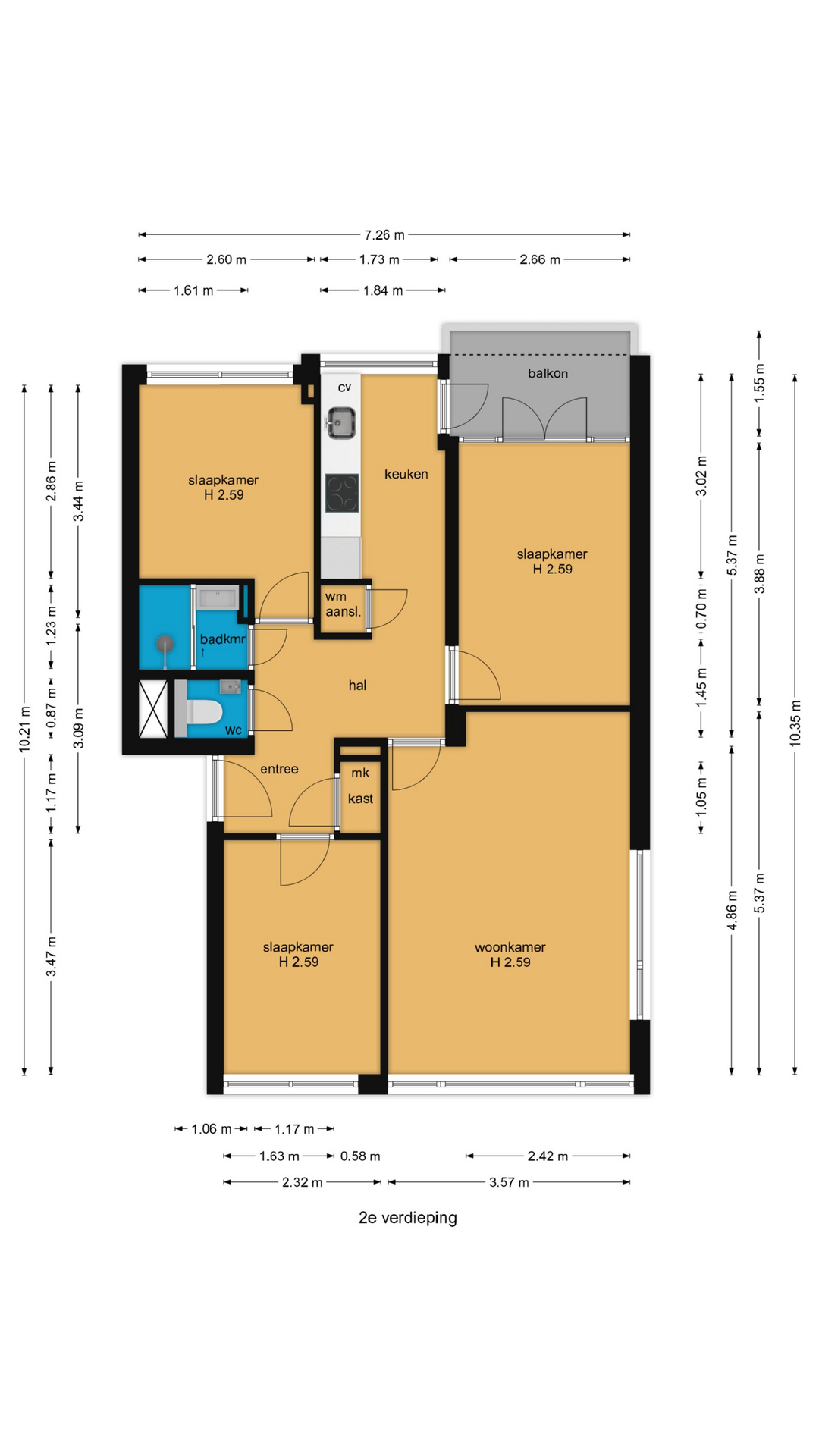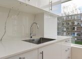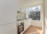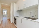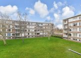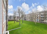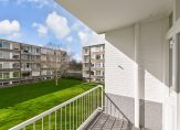 Trap naar de 2e etage, entree appartement, hal met garderobekast, apart toilet, slaapkamer aan de voorzijde, woonkamer met zeer gunstige lichtinval dankzij grote raampartijen aan drie zijden en openslaande deuren naar ruim balkon dat op de middag- en avondzon is gelegen. De hoofdslaapkamer is rustig gelegen aan de achterzijde van het complex en goed van formaat. De keuken is eveneens aan de achterzijde gelegen en beschikt over eenvoudig keukenblok en opstelplaats voor de cv-ketel. Tot slot de tussengelegen badkamer met keurig tegelwerk, inloopdouche en meubel met wastafel.