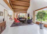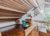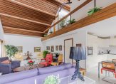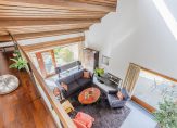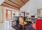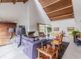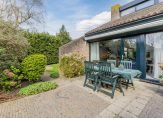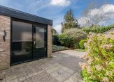 De ruime woonkamer met schuifpui naar de achtertuin op het westen, open haard en hoge nok, is voorzien van een vide. Middels een loopdeur is de zijtuin te betreden, gelegen op het zuiden.