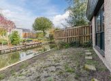 De voortuin met oprit is gelegen op het oosten. Hier is plek voor het parkeren van twee auto’s. De ruime achtertuin, met toegang tot de garage, grenst aan een sloot en is op het westen gelegen. De achtertuin is voorzien van een terras en een grasgazon. Aan de noordzijde grenst de tuin aan een sloot.