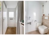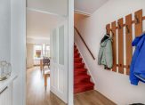 Het autovrije pad brengt je naar de voordeur van deze mooie, uitgebouwde woning. In de hal zijn de trapopgang, de meterkast en de vernieuwde toiletruimte met fonteintje. Qua kleuren is er gekozen voor neutraal wit en sfeervol beige.