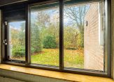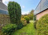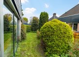 Deze fijne woning wordt aan drie kanten omringd door een tuin met een goede zonligging. De voortuin is op het oosten, de zijtuin op het zuiden en de achtertuin op het westen. Zo is er zon gedurende de hele dag en valt er in huis veel licht naar binnen. Op de oprit kan de auto staan en de achtertuin grenst aan een groenstrook met hoge bomen.