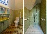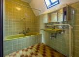 Een van de typische jaren ’70 kleuren is groen. Deze kleur zie je in de badkamer, bij het sanitair en het tegelwerk. De ruimte is ingedeeld met een ligbad, een aparte douche, een toilet en een wastafel. (toilet staat niet op de plattegrond)