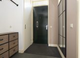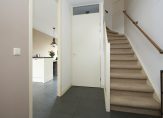 Bij binnenkomst valt meteen de prachtige donkergrijze plavuizen vloer op, die samen met de vloerverwarming in zowel de woonkamer als de keuken zorgt voor een stijlvolle én behaaglijke basis. In de hal tref je de meterkast, het toilet en de trapopgang naar de eerste etage – praktisch én netjes afgewerkt.