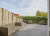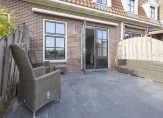 De achtertuin is onderhoudsvriendelijk betegeld met mooie grijze tegels en ligt aan het water – een heerlijke plek om te ontspannen, te borrelen of gewoon te genieten van het uitzicht. Een zonnescherm biedt schaduw op zonnige dagen en in de separate berging met elektra berg je moeiteloos fietsen, gereedschap of tuinspullen op.
