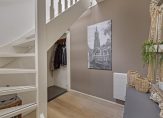 Achter de voordeur zijn de hal met trapopgang en een inpandige berging annex garderobe. Via het trapgat valt veel licht naar binnen en in de hal zie je direct dat dit een penthouse boordevol sfeer is.